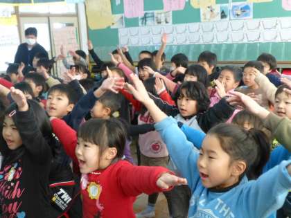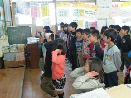 1年生は,6年生に「ありがとう」や「おめでとう」の