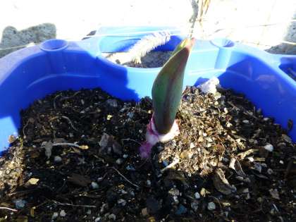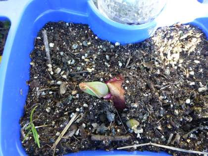 「チューリップが芽を出したよ。」