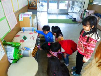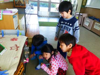 うさぎの様子をしっかり観察しています。