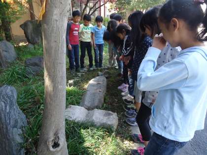 上鳥羽小学校にある「車石」を知っていますか?昔,鳥羽街道に牛車が通っていた頃の道路に敷石だそうです。今は玄関横の職員室のすぐ前に置かれています。その「車石」の取材に京都新聞が来校しました。来週の記事になるそうです。どんな記事になるのか今から楽しみです。