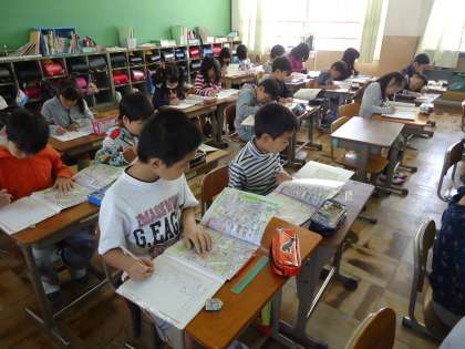 教科書の絵にあるお店を,箇条書きで書いていきました。