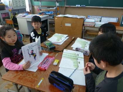 班の友達と,竹のはっぱ役,地の文役,聞き役になり