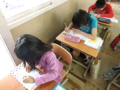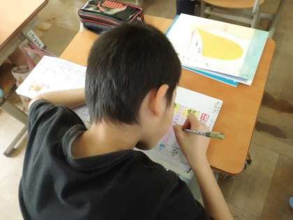 国語の時間の初めの5分間は,新出漢字の練習をしています。4年生では,一画一画を大切にして丁寧に書くことを大切にしています。