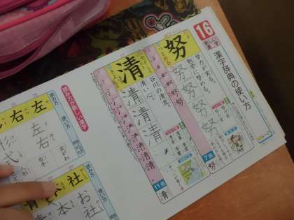 今日は,「努」「清」という字を習いました。集中して丁寧に練習する姿がすばらしいです。一つ一つの積み重ねが力になっていますね。この調子で続けていきましょう。