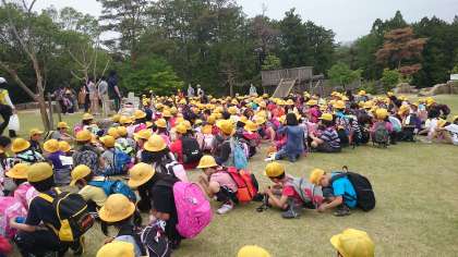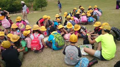 すべての活動が終了し,広場での解散式です。ふりかえりの中では,少し暑かったこともあり,「楽しかったけど疲れた〜」という子も多かったです。今から学校に向かって出発します