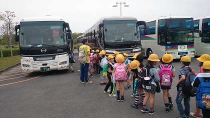 すべての活動が終了し,バスに乗車します。学校への到着は15:00頃になる予定です。