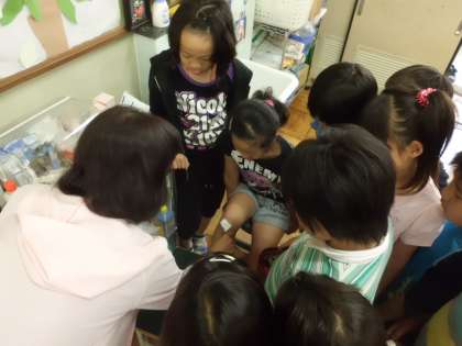 今日もみさきの家に向けての係活動をしました。生活保健係では,万が一怪我をした時に簡単な手当てができるように練習しました。消毒を上手にできていましたね。生活保健係がいてくれて,心強いですよ。