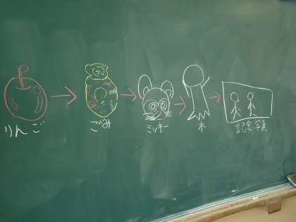たてわり活動のリーダーとして活躍する6年生!みんなそれぞれのグループで下級生をまとめながら,楽しい遊びをがんばっています。27日の6−1では絵しりとりをして楽しんでいました。