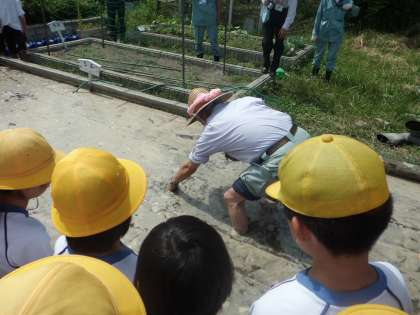 昨日の代かきに続き,本日は田植えを行いました。農家の方のお話を聞いてがんばりました。2人の早乙女(さおとめ)も登場しましたよ。おいしいお米に育ってほしいです。