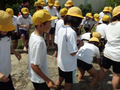 いよいよ上鳥羽小学校に田んぼが完成しました。がんばっておいしいお米を育てます!