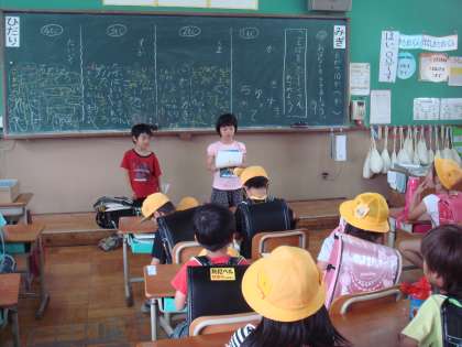 帰りの会で,日直さんによるスピーチを始めました。