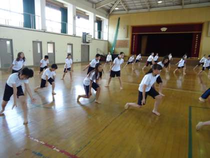体育でソーラン節を練習しました。みんなで振り付けを覚えておどりました。土曜参観の時に公開する予定です。