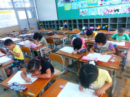 1年生の問題を「かんたん〜」と言いながら解いていました。