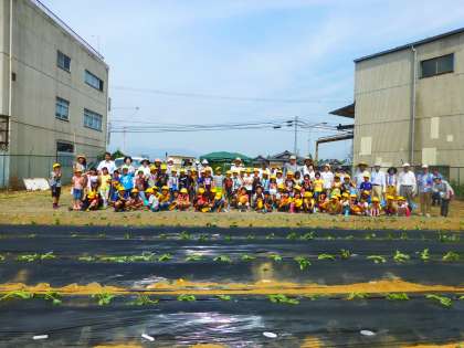 さつまいもの苗植えを終えて,末広会の方と