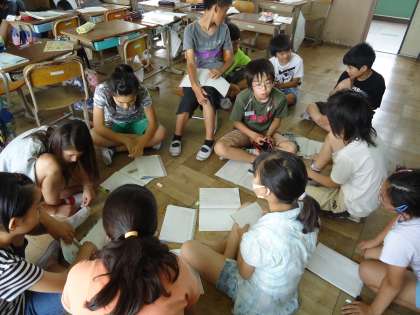 国語で学習した柿山伏の音読と劇の練習をしています。おもしろい話なのでみんな楽しそうに取り組んでいます。