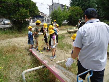 公園がきれいになってくるとみんなの笑顔がこぼれてきました。ふり返りまでしっかりとできました。