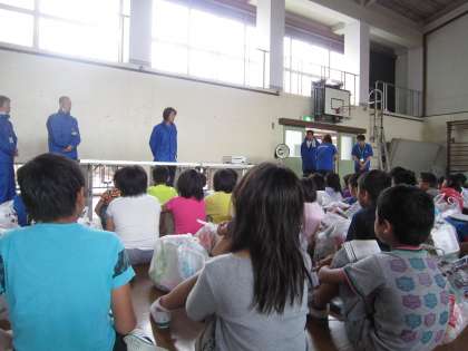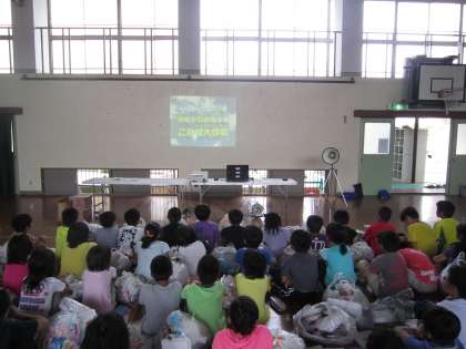 社会科の学習では,「くらしとごみ」の学習をしています。今日は,まち美化事務所の方に来ていただきいろいろ教えていただきました。まずビデオを見せていただき,ごみの分別の大切などを教えていただきました。