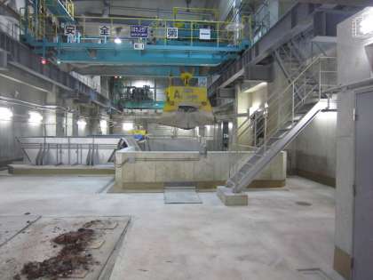 またまた大きなクレーンの登場です。このクレーンの名前は,灰クレーンといいいます。ごみを燃やした後に出る灰を運びます。ごみクレーンとちがって,すきまがないのも大きな特徴だと知ることができました。