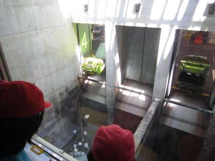 ごみピットにたくさんの資源ごみが。そして,もえるごみと同じように資源ごみクレーンがありました。