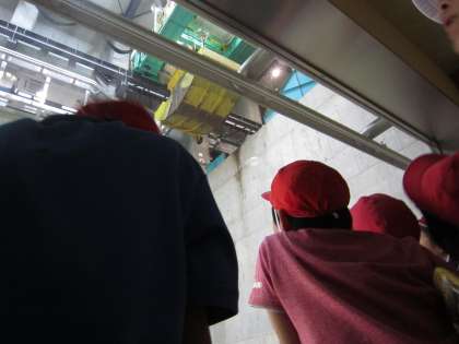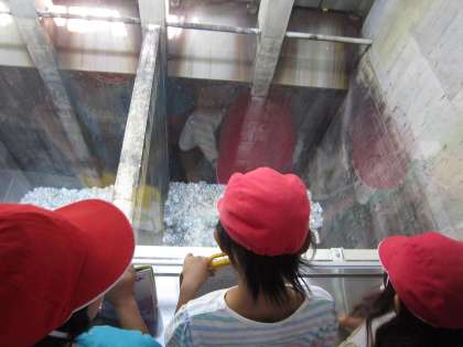 資源ごみもたくさん運ばれてきています。運がいい事に,パッカー車からごみがおろされる瞬間を見ることができました。