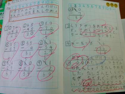 7月2日(水) 2年 ☆算数☆ たし算とひき算の筆算の練習 その1
