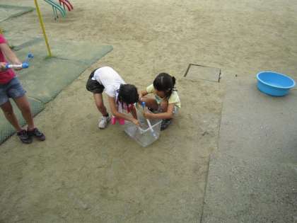 理科の学習のまとめで,空気鉄砲や水鉄砲のおもちゃで楽しみました。それぞれの性質を考え,楽しめていましたね。