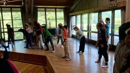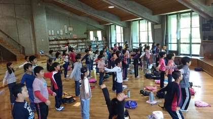 2日目です。天気は気がかりですが,今のところ味方をしてくれています。朝の目覚めをスッキリとする「ラジオ体操」の時間です。