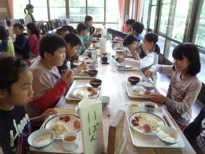 1日の元気の源「あさごはん」です。大切な時間です。しっかりいただきましょう。ご飯食とパン食が選べるのもうれしいですね。