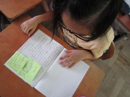 今日は,紹介カードをもとに書いた一つの花の紹介文を交流しました。発表して感じたことや自分の紹介文と比べたことを付箋に書いて,渡していきました。