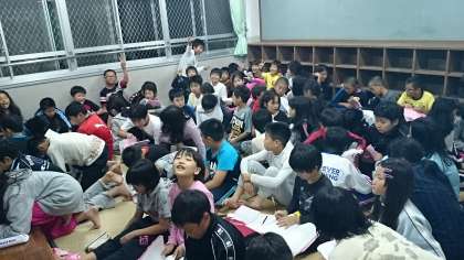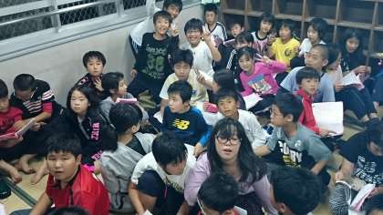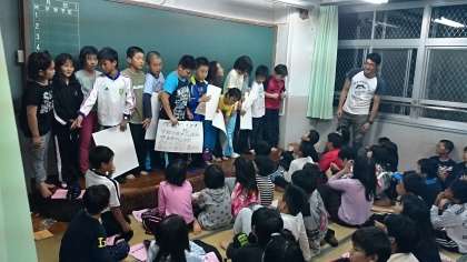 2日目が終わろうとしています。どうでしたか。友だちと協力して楽しくすごせたでしょうか。自分から行動できたでしょうか。グループでそして学年で1日のふりかえりを行いました。
