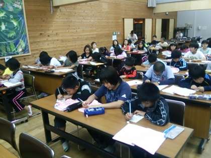 9日の夜は,山の家に宿泊することになりました。この日の夜は,家族への手紙を書く活動がありました。子どもたちは一生懸命,書いていました。