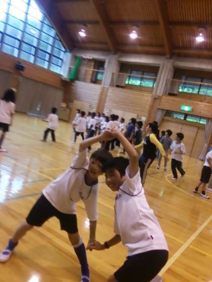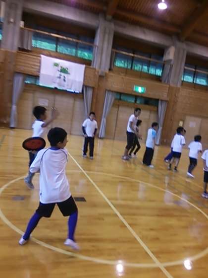 プレイホールでドッチビーをしました。フリスビー型の柔らかいものがボールの代わりになり,ドッチボールのルールでゲームをします。とても盛り上がっています。