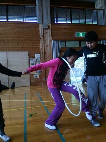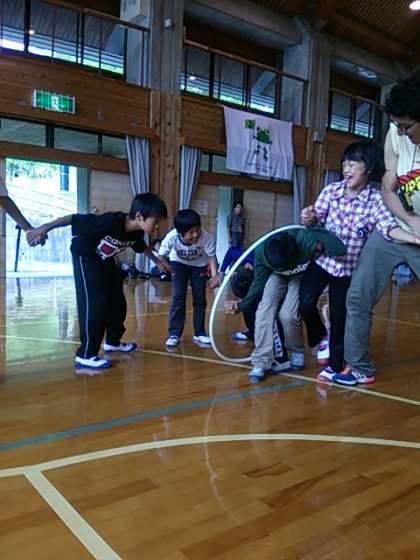 ボルダリング前の準備運動です。こどもたちは,とても楽しみにしています。