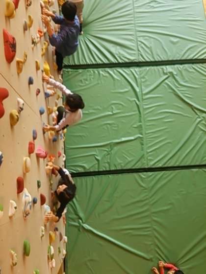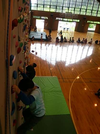ボルダリングの活動をホールの上から見てみました。