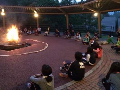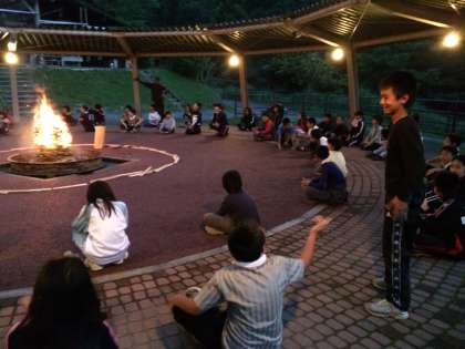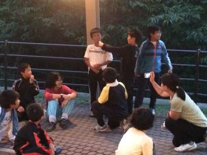 フォークダンスの次は,ゲーム大会。回ってきたボールをストップがかかったときに持っていればアウト!