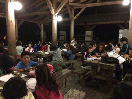 キャンプファイヤー後のふりかえり。花背ラストナイト。みんなしっかり自分の意見を伝えました。