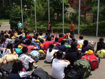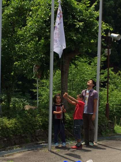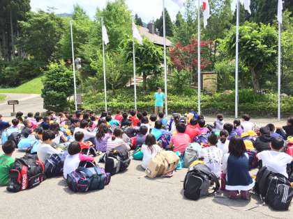 5泊6日の長期宿泊もいよいよ終了です。山の家に感謝をこめての退所式です。