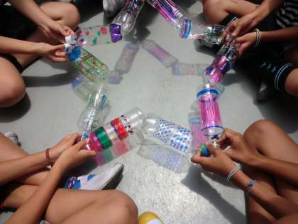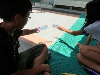 ひさびさに太陽が出ていたので,色をつけていたペットボトルに