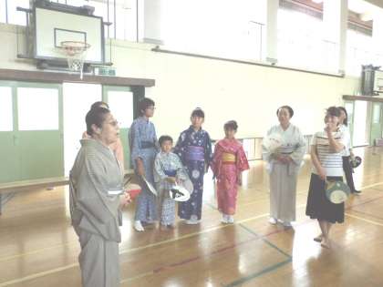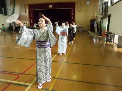 7月19日(土)の午前中,上鳥羽小学校の体育館で盆踊りの練習をしました。来る7月26日(土)の午後6時より,村山公園で行なわれる上鳥羽学区恒例の「夏の夜市」(夏祭り)に向けた練習会です。女性会の方々を講師にお招きし,児童・PTA・教職員で約2時間の練習をしました。とても盛り上がって楽しかったです。
