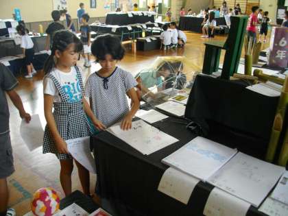 5年生の場所には,自由研究,絵画,習字,工作などがたくさん飾ってあります。子どもたちのがんばりが伝わってきました。