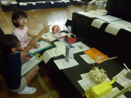 子どもたちは各学年の作品を鑑賞して,良かった所や工夫しているところをメモしていました。