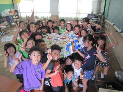 算数の学習では,面積の学習をしています。今日は,1平方メートルはどれくらいの大きさかを予想し,新聞紙で1平方メートルの大きさを作りました。そして,1平方メートルには,人が何人乗れるかな?牛乳パックは何個のるかな?という疑問を立て,グループごとに調べていきました。実際調べることで,量感が身につきましたね。