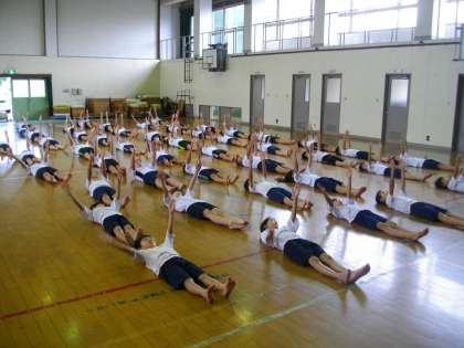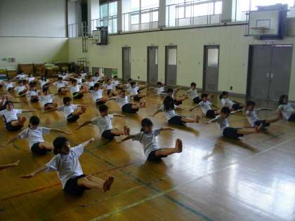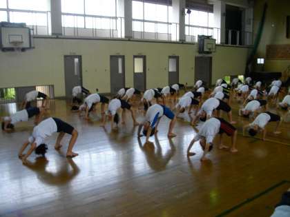 今日から組体操の練習が始まりました。一人技からコツコツやっています。V字バランス,ブリッジなどの様子です。