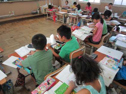 国語の学習では,夏休みに読んだお気に入りの本をポスターで紹介します。あらすじや登場人物を整理しながらまとめていきました。上手にまとめることができましたね。