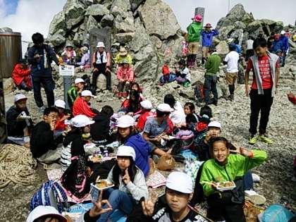全員登頂しました。天気が良くて絶景です。この日に向けて,取り組んできた成果が出ました。みんな本当におめでとう。