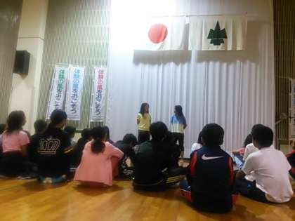 レクリエーション大会が始まりました。今はジャングル探検をしています。