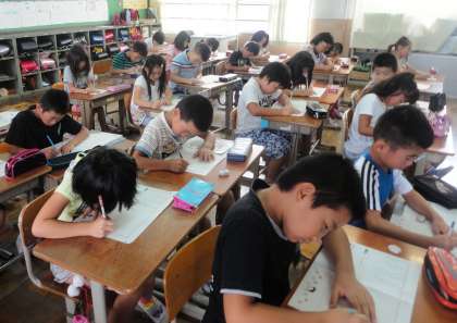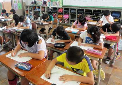 みんなで音読をしたあと,視写をしました。