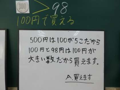 9月11日(木) 2年 ☆算数☆ 買えますか?買えませんか? その2