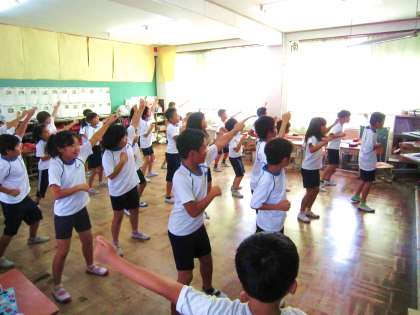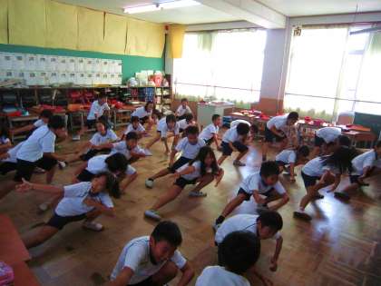今日は,クラスで運動会に向けた練習です。今年は,「上鳥羽ソーランでええじゃないか〜動きを一つに声を一つに心一つに〜」というテーマで取り組みます。