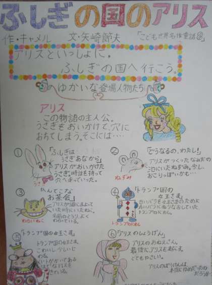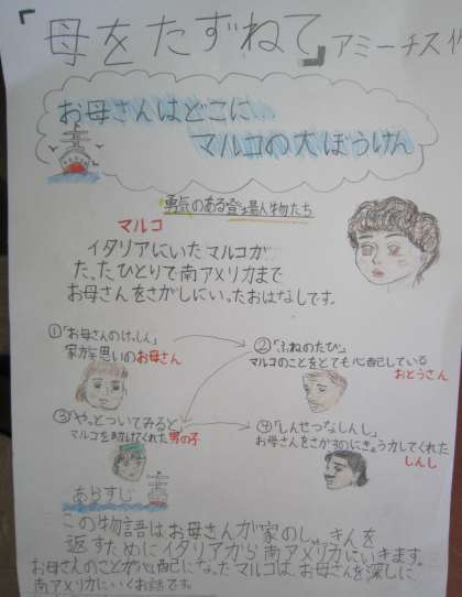 「本は友達」の学習では,相手が興味をもつように工夫してポスターにまとめていきました。キャッチフレーズを考えたり,絵を入れたりしながら上手に作成できましたね。出来上がったポスターは,図書室に掲示する予定にしています。